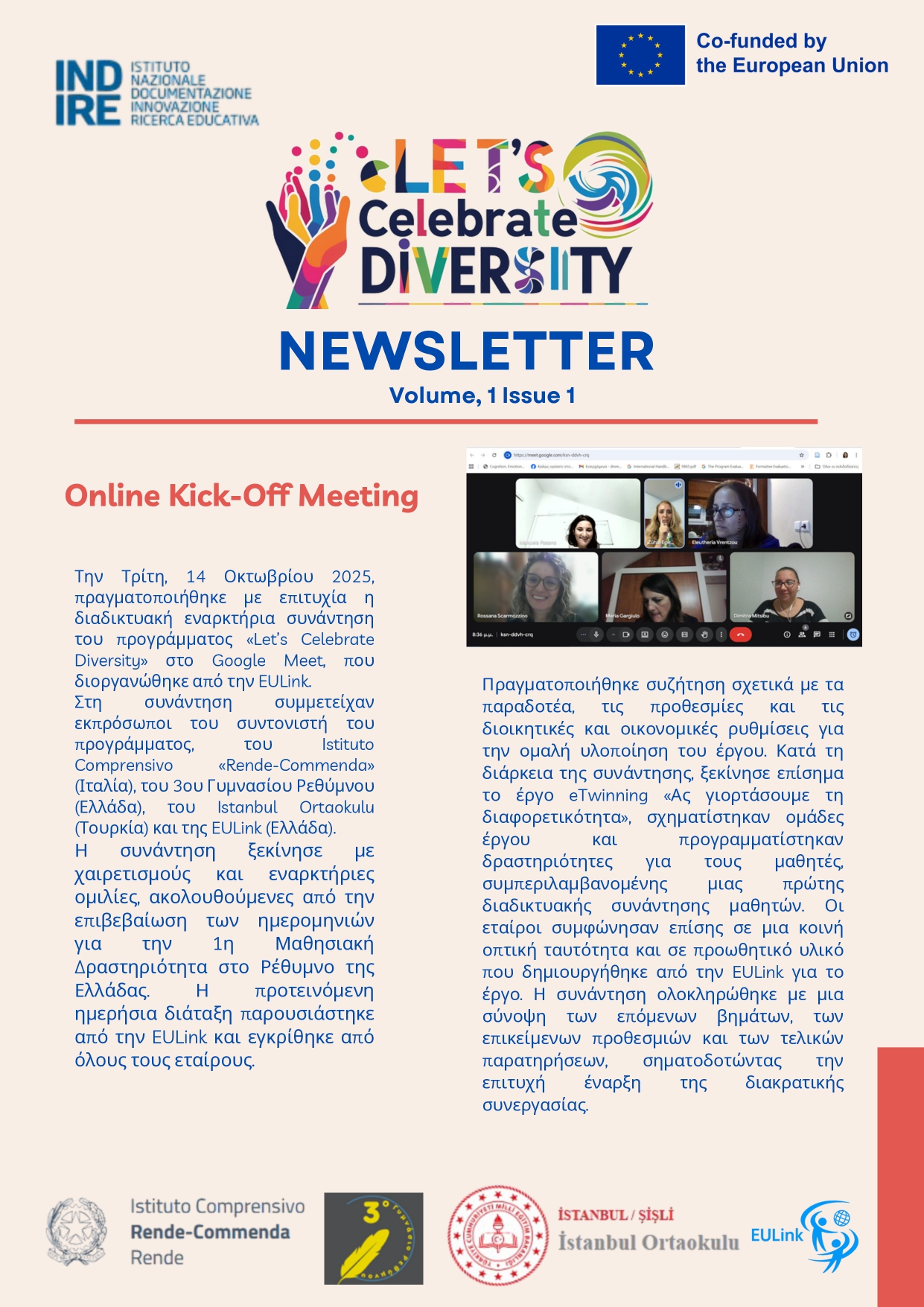 Προβολή μεγαλύτερης εικόνας LET’S Celebrate DIVERSITY – NEWSLETTER By Κάλλι Κουκλινού|2026-01-14T13:44:59+02:0014 Ιανουαρίου 2026|e-Twinning, Δραστηριότητες| Μοιραστείτε το άρθρο! FacebookTwitterRedditLinkedInTumblrPinterestVkEmail Σχετικά Άρθρα Η Καλή Πράξη των Χριστουγέννων! Gallery Η Καλή Πράξη των Χριστουγέννων! Συμμετοχή του σχολείου μας σε δράση της “Βραδιάς του Ερευνητή” Gallery Συμμετοχή του σχολείου μας σε δράση της “Βραδιάς του Ερευνητή” Νέο πρόγραμμα Erasmus+ ΚΑ210, “Let’s Celebrate Diversity” , για το 3ο Γυμνάσιο Ρεθύμνου Gallery Νέο πρόγραμμα Erasmus+ ΚΑ210, “Let’s Celebrate Diversity” , για το 3ο Γυμνάσιο Ρεθύμνου Πρόγραμμα επαναλητικών εξετάσεων Σεπτεμβρίου 2025. Gallery Πρόγραμμα επαναλητικών εξετάσεων Σεπτεμβρίου 2025. «ΕΚΚΛΗΣΙΑΖΟΥΣΕΣ» του Αριστοφάνη από το 3ο Γυμνάσιο Gallery «ΕΚΚΛΗΣΙΑΖΟΥΣΕΣ» του Αριστοφάνη από το 3ο Γυμνάσιο