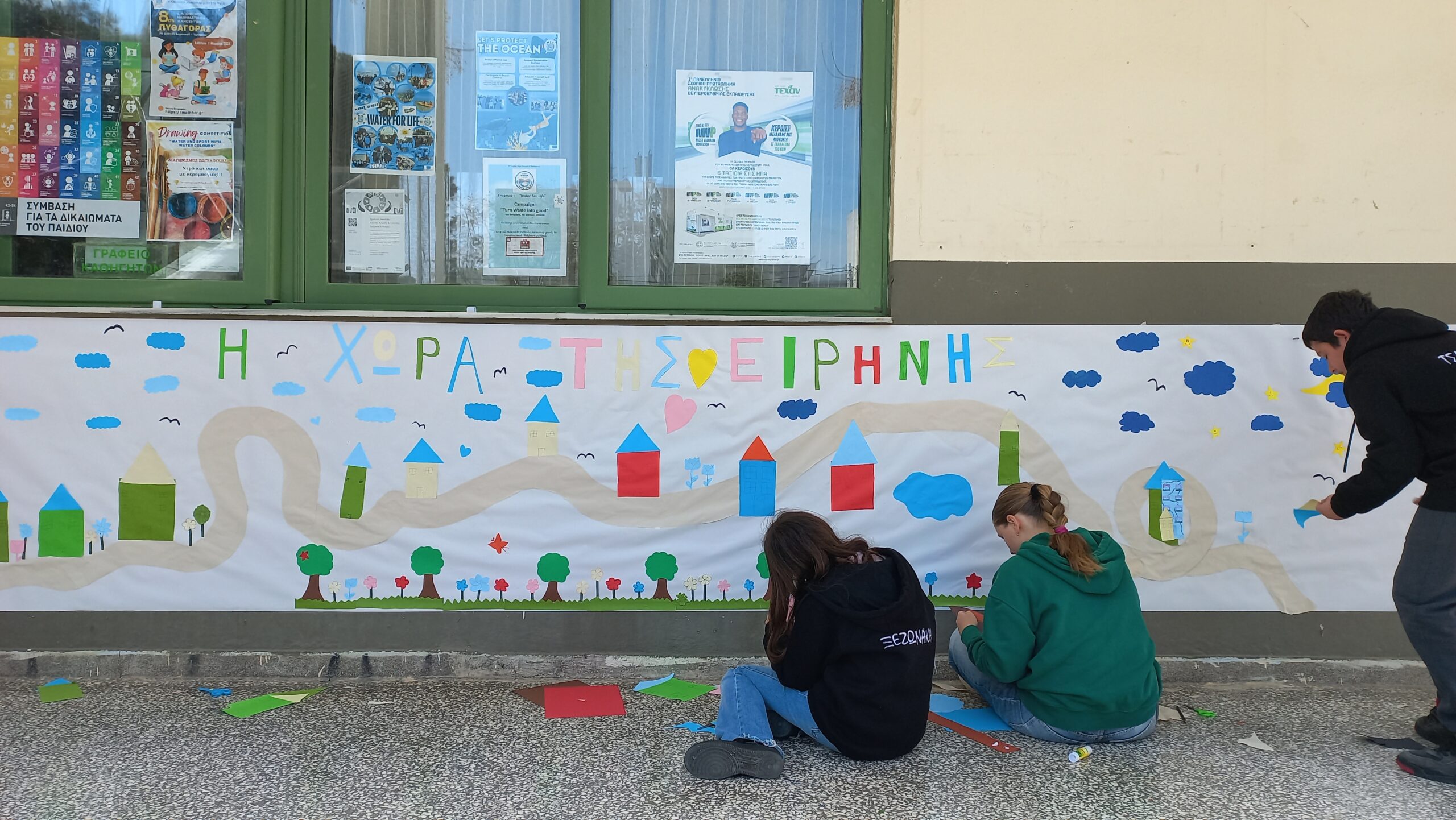 Στο πλαίσιο δράσεων για την Πανελλήνια Ημέρα κατά της βίας στο σχολείο και τον εκφοβισμό στις 6 Μαρτίου, η Ομάδα Σχολικής Διαμεσολάβησης του σχολείου μας μαζί με συμμαθητές και συμμαθήτριές τους, δημιούργησαν φέτος στον Τοίχο μας τη “Χώρα της Ειρήνης”.